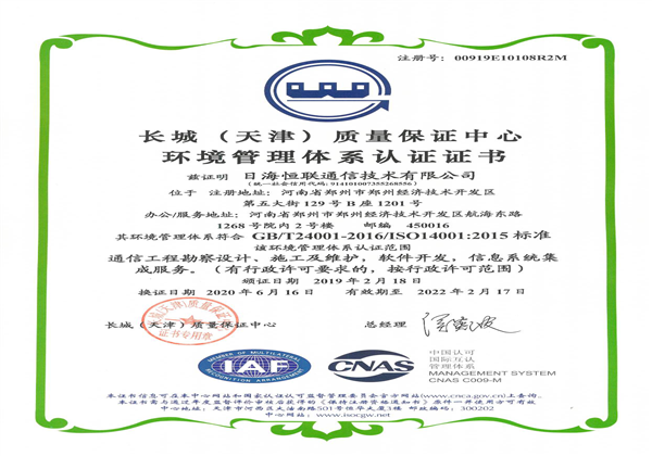 環(huán)境管理體系認(rèn)證證書